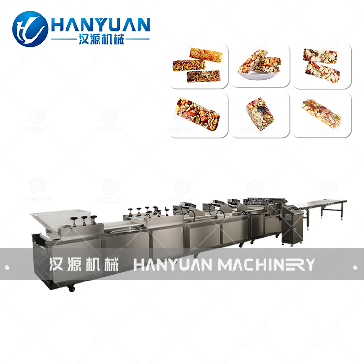 坚果切糕机器主要适用于生产坚果切糕、花生酥、芝麻酥、米花酥、芝麻片、谷物棒、玉米酥、瓜子酥等长方块食品。坚果切糕机器由铺料、压平、冷却、切块成型、冷却输送等五部分组成。